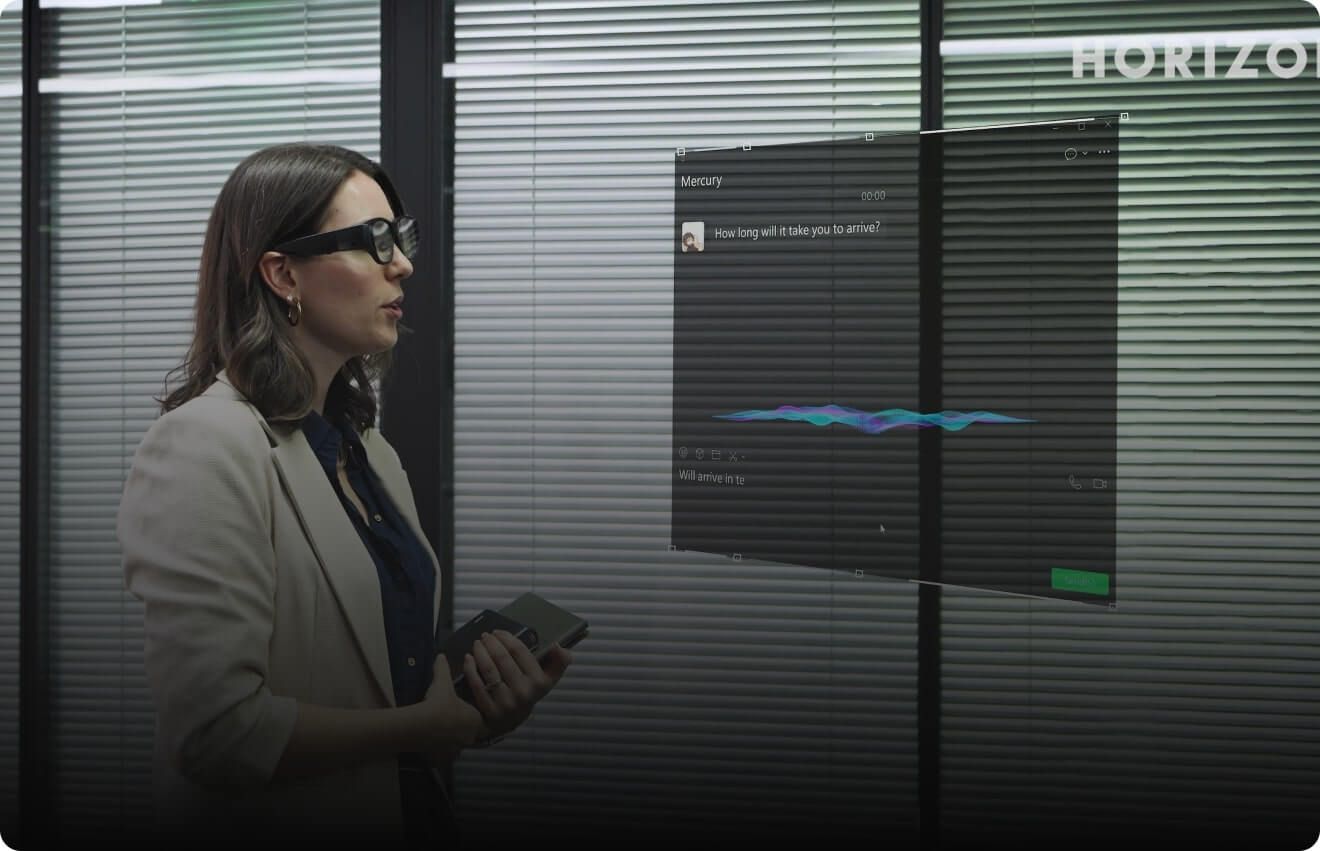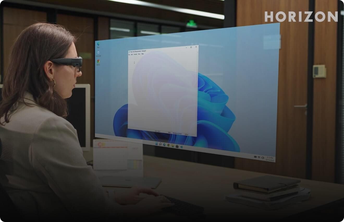 HORIZON is built on a philosophy of subtlety. Its lightweight, glasses-like form factor is designed for all-day wear—whether you’re working in a coffee shop, on a flight, or in the office.